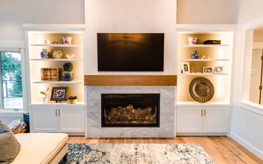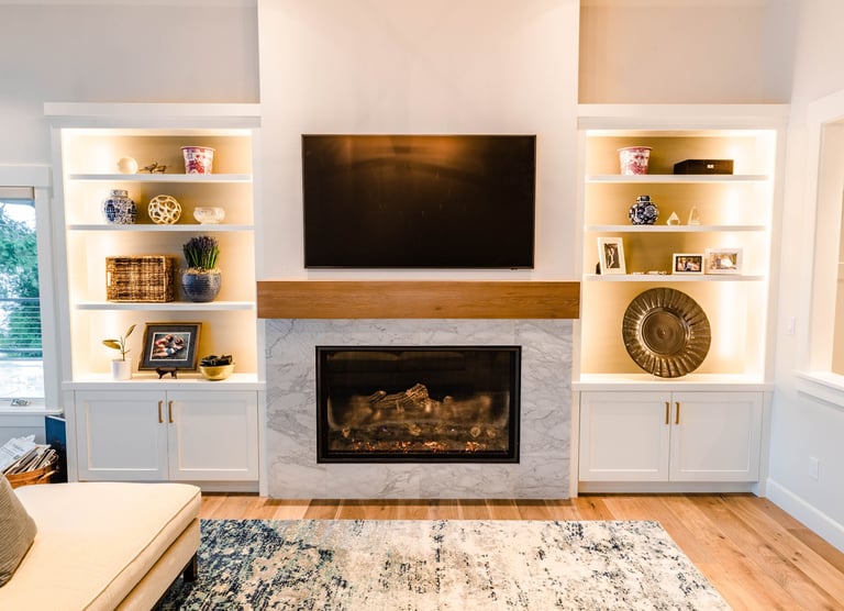Warm toned hardwood floors on the entire upper floor complimented by the black walnut beams in the great room and new fireplace mantle. Custom built in cabinets on either side of the new fireplace equipped with accent lighting.